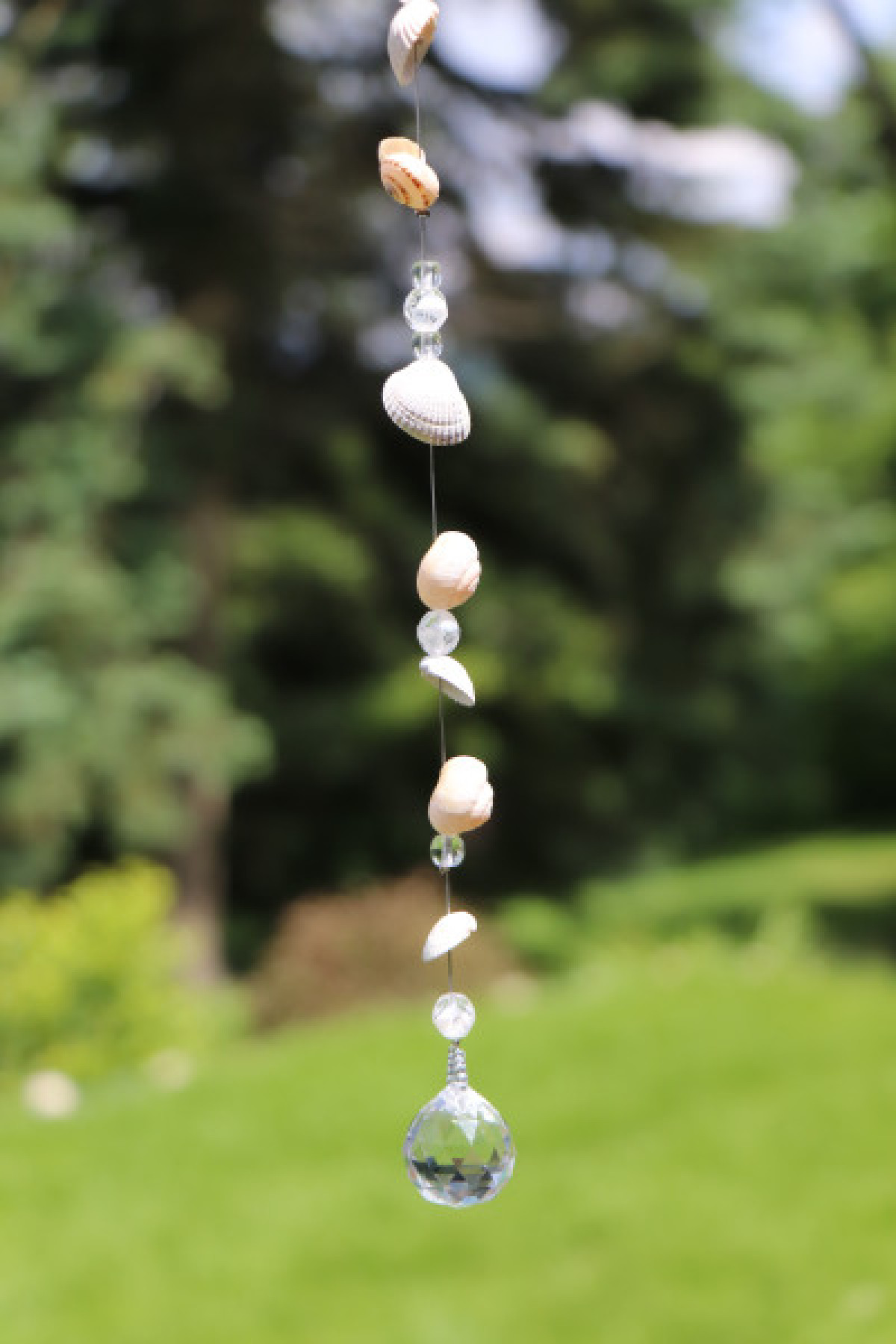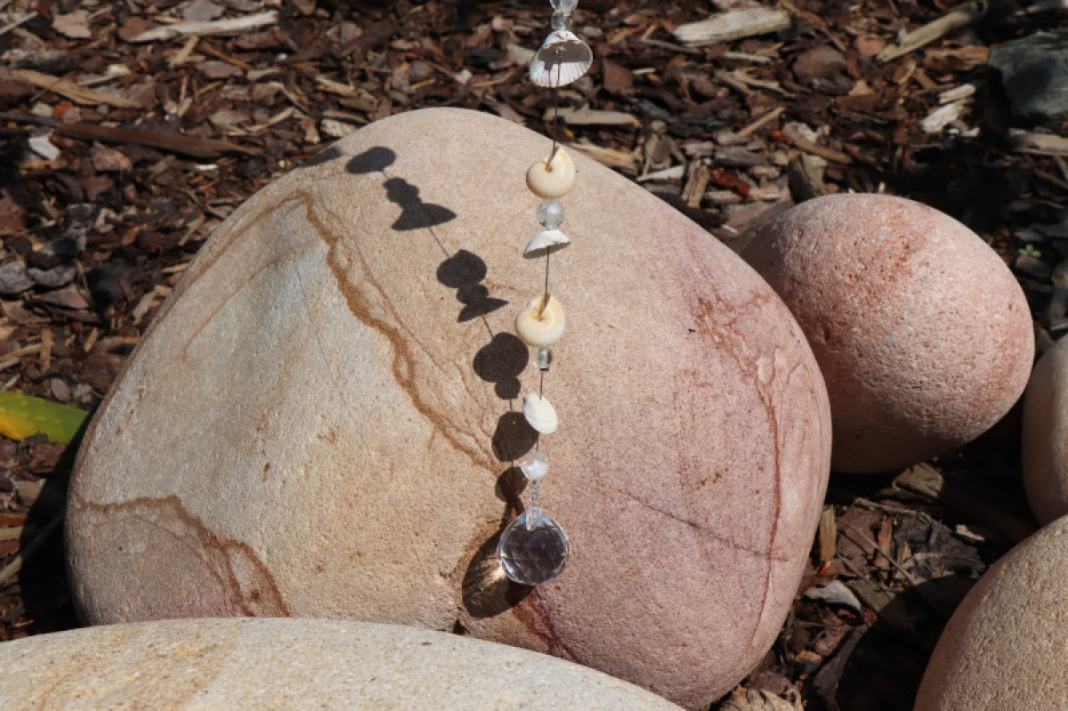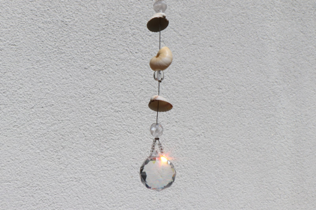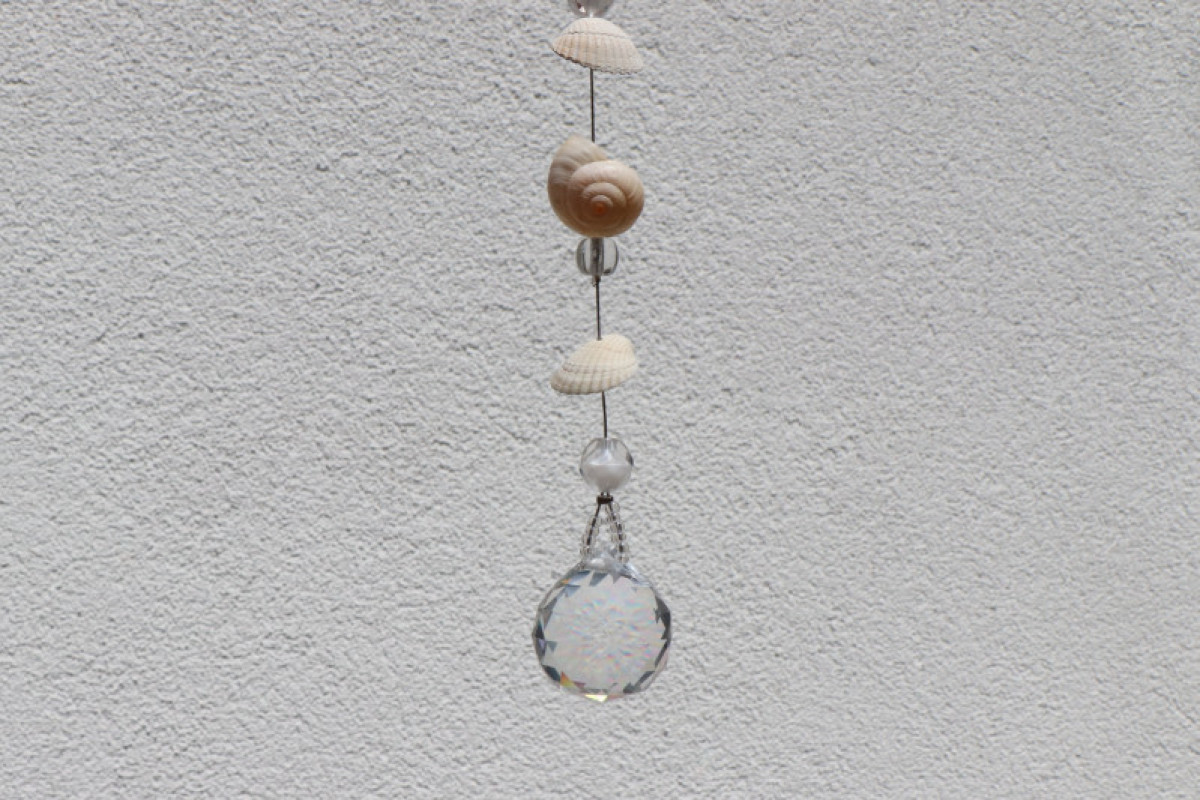 Lapač slunce s mušličkami, malými ulitami šneků a korálky zakončený broušenou skleněnou koulí. Jedná se o závěsnou dekoraci, která nejlépe vynikne tam, kde na ni budou dopadat sluneční paprsky. Lapač zachytí sluneční energii a rozprostře ji dále do prostoru pomocí duhových odlesků.