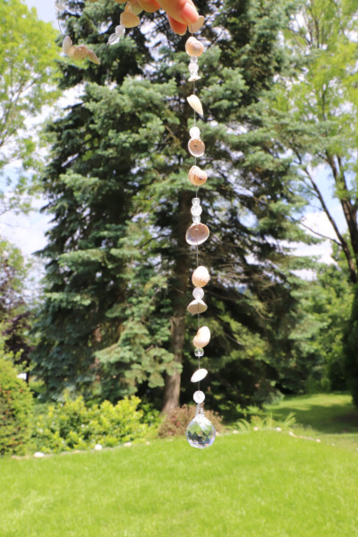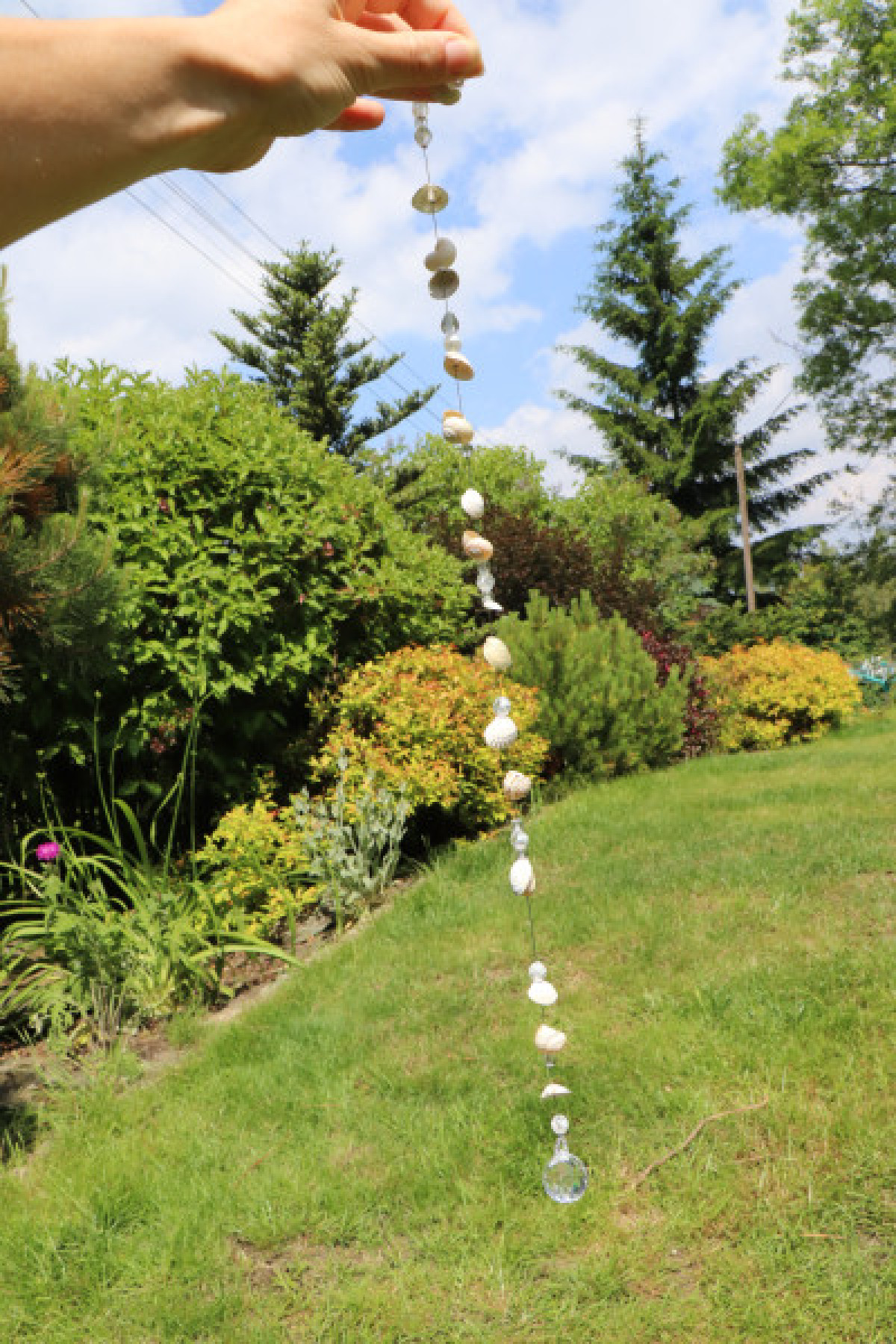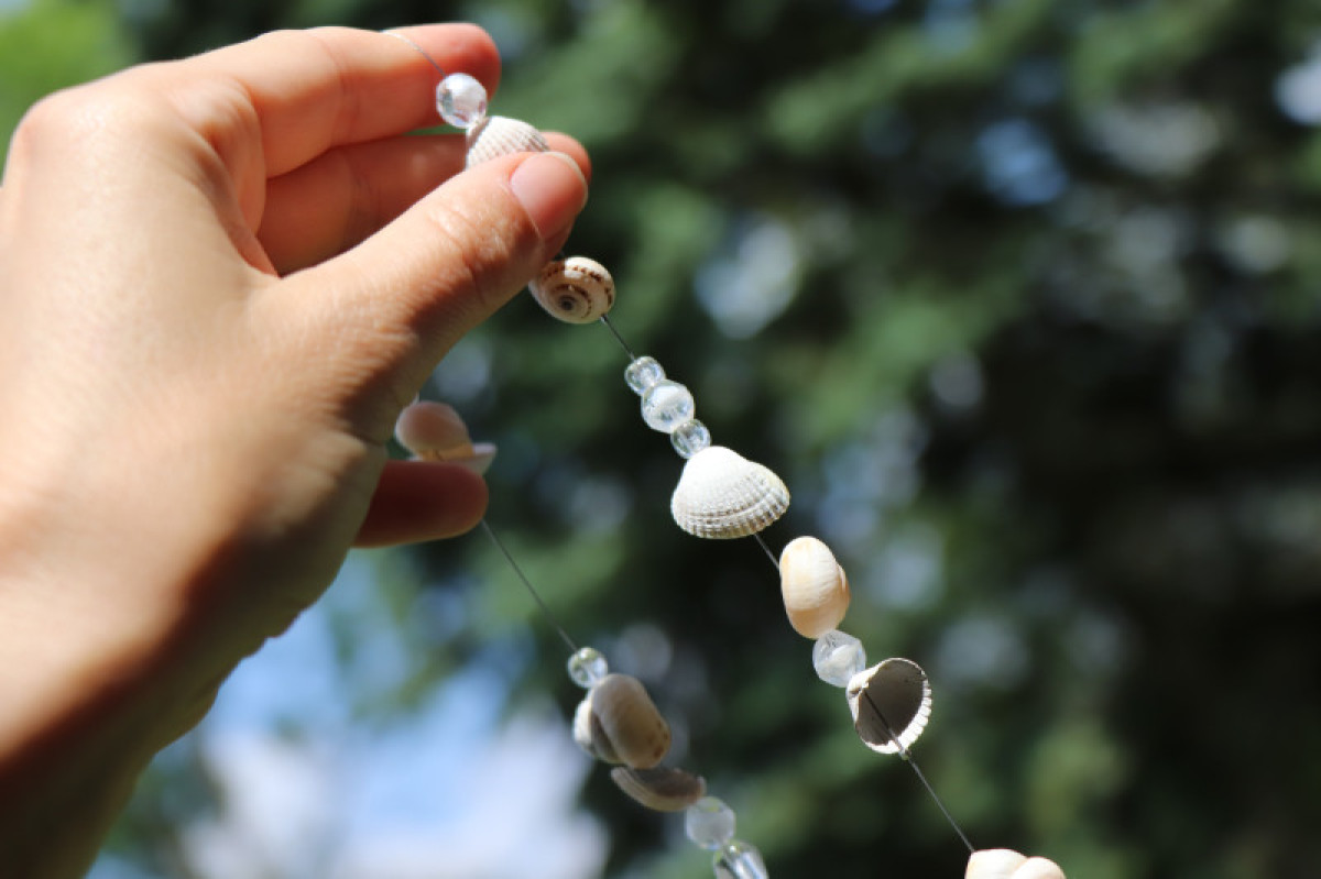Lapač slunce s mušličkami, malými ulitami šneků a korálky zakončený broušenou skleněnou koulí. Jedná se o závěsnou dekoraci, která nejlépe vynikne tam, kde na ni budou dopadat sluneční paprsky. Lapač zachytí sluneční energii a rozprostře ji dále do prostoru pomocí duhových odlesků.