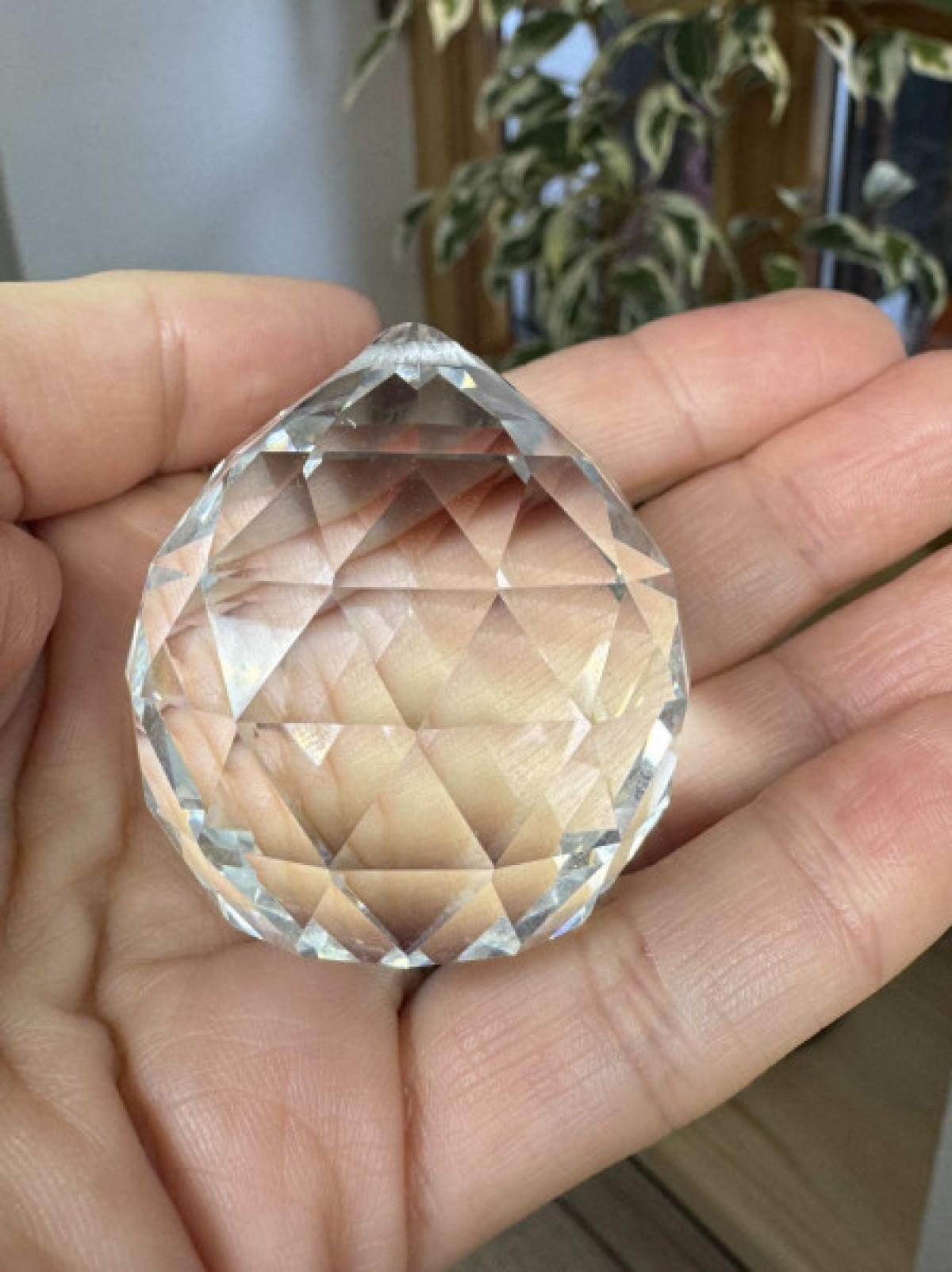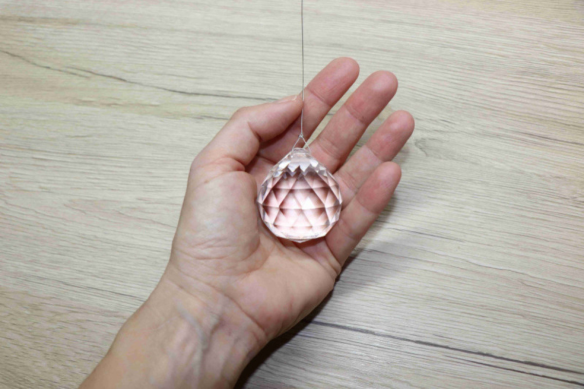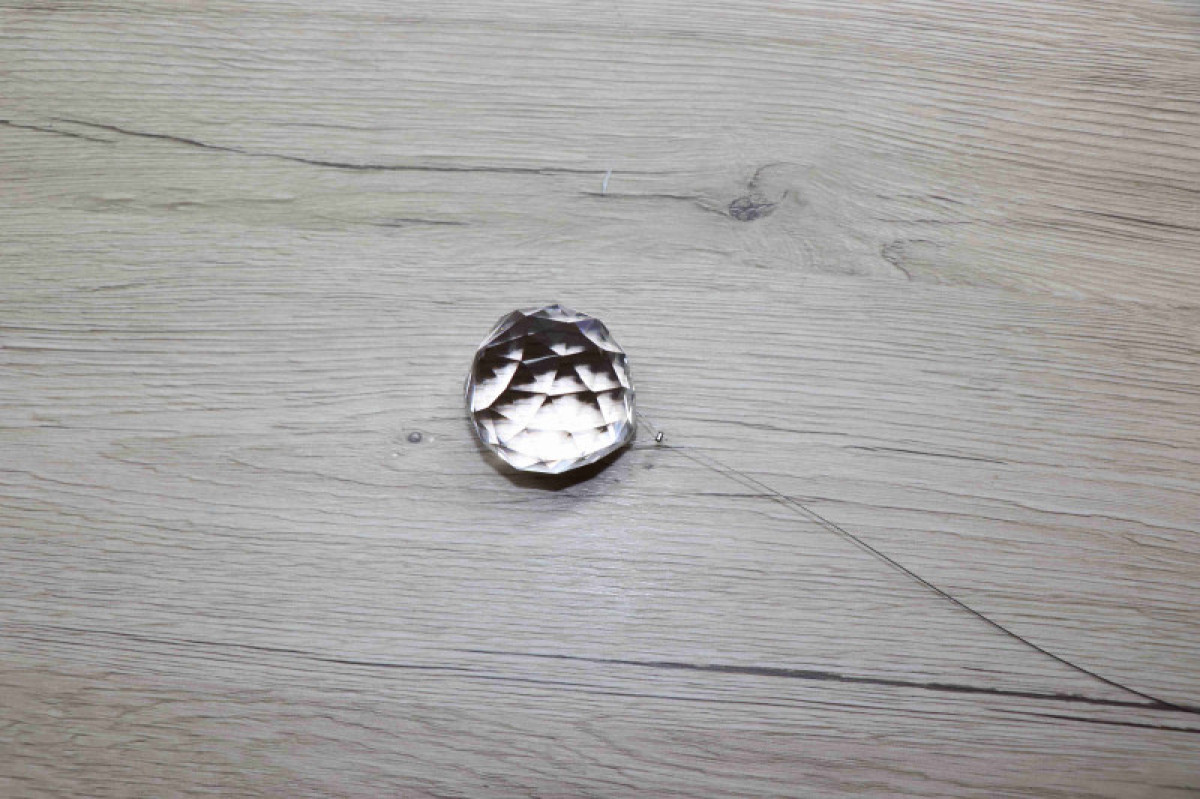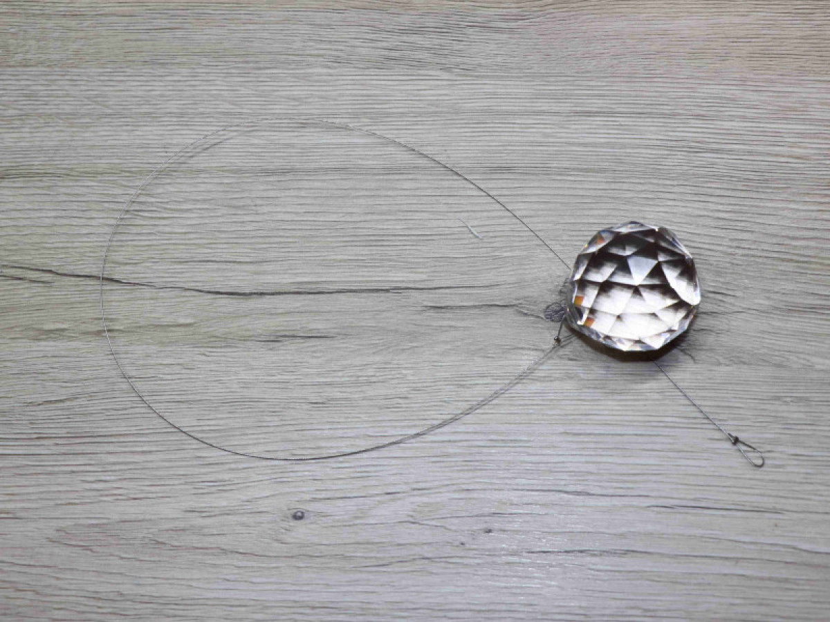 Délka celého závěsu je 45 cm ( na přání jemožné změnit). Průměr broušené koule je 5 cm.